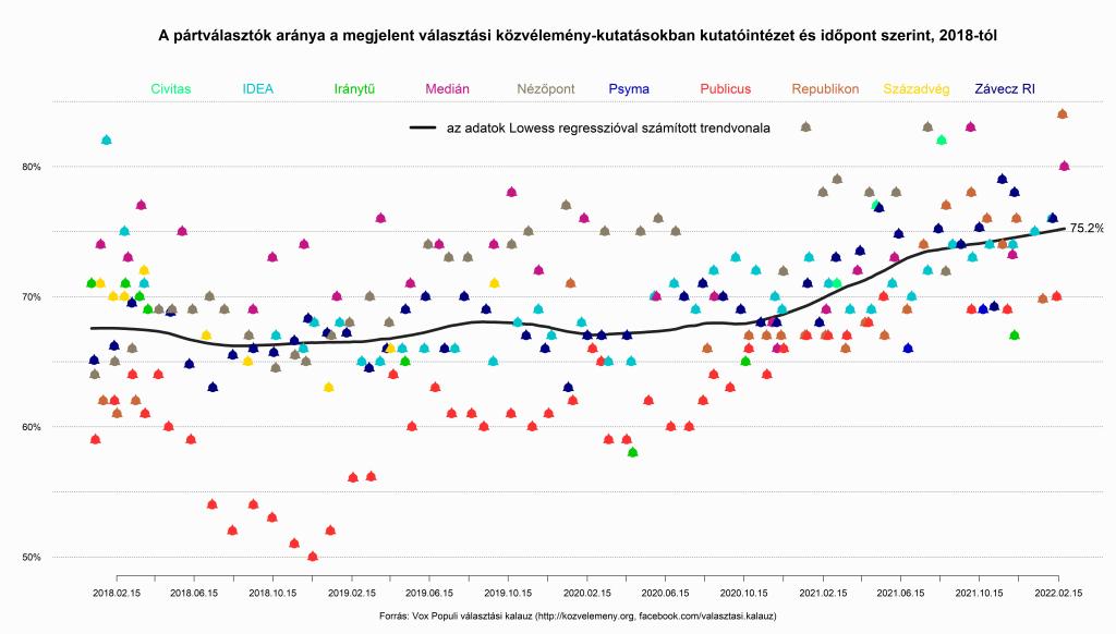 Az elmúlt másfél év számszerűen legnagyobb változása a választási közvélemény-kutatásokban az volt, hogy a pártot választani nem tudó vagy nem akaró megkérdezettek aránya csökkent 8 százalékponttal (a korábbi kb. 33%-ról 25%-ra, tehát több, mint negyedével). Ez a változás nagyjából akkor kezdődött, amikor 2020 augusztusában bejelentették, hogy az ellenzéki pártok (mínusz Kutyapárt) közösen indulnak el a 2022-es választásokon.