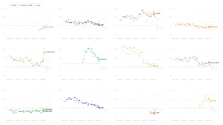 Az OĽaNO már fel is ugrott az adatokban, akárcsak 2016-ban. Ezúttal éppen csak 5% felettről egész 13%-ig. Annyira nagy és gyors volt az emelkedése, hogy néhányan már arra tippelnek, talán még a Smert is megelőzheti majd a választáson. Egy fogadóiroda már 40% felettire teszi ennek valószínűségét. Ha ez bekövetkezne, akkor annak szerény lenne a gyakorlati hatása, de azért erős szimbólum lenne, hiszen a Smer 2006 óta mindig első helyen végzett minden parlamenti választáson.