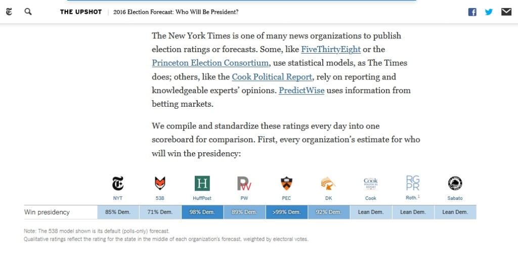 Egy szó, mint száz, néhány dilettáns előrejelzőn – mint a kiváló egyetem nevét csupán abúzáló Princeton Election Consortium – kívül elsősorban talán akkor is főleg az olvasók rossz szemüvege volt az oka, ha nagyon lebecsülték Trump győzelmi esélyeit (ami nem volt szükségszerű, én aludni sem tudtam a választás napján, hiába akartam, annyira nyugtalanított egész évben az, hogy milyen sok esélyt adtak az előrejelzők egy a demokratikus értékeket annyira nyilvánvalóan tagadó jelöltnek, mint Donald Trump)