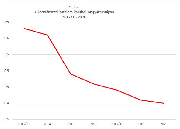 - Ezt a folyamatot a World Justice Project (WJP) Rule of Law indexe, ezen belül a nyugati társadalomfejlődés lényegét magába sűrítő mutató, a kormányzati hatalom korlátai segítségével írjuk le.