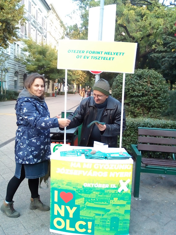 A megvalósítás során standoltunk a Mátyás téren, valamint járókelőknek és az ellenzéki jelöltek javára végzett kopogtatáskor is osztogattuk a szórólapot azzal, hogy mindenki saját belátása és megérzése szerint döntsön.