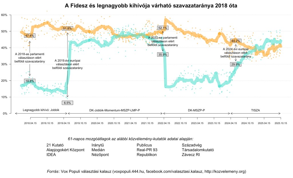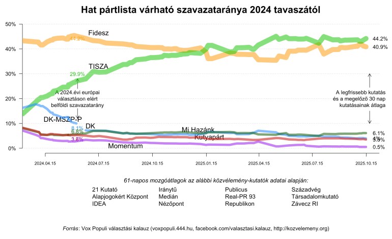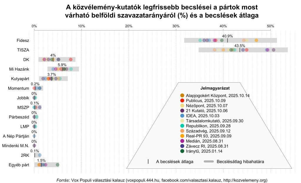 A pillanatnyilag várható szavazatarányok kiszámítása (utolsó frissítés: 2025. október 23)