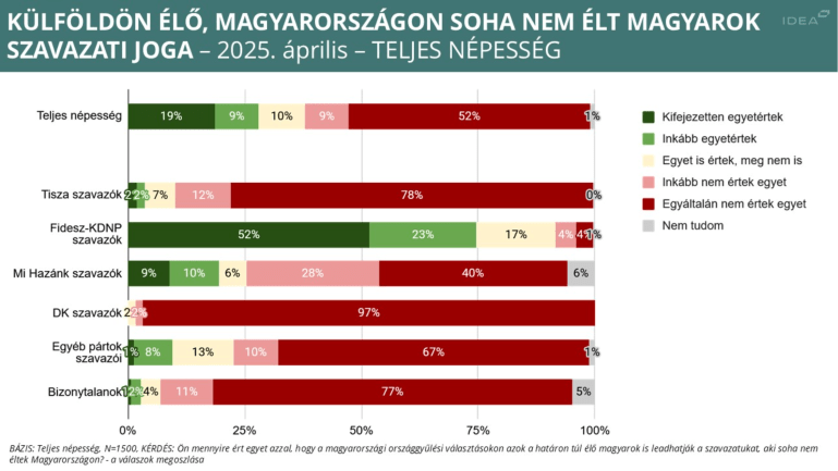 Abban pedig hónapok óta minden nyilvános kutatás egyetért, hogy jelenleg a TISZA támogatói mutatnak nagyobb részvételi kedvet. Még Mráz Ágoston nagysikerű önmeghazudtolása is nyomatékosan aláhúzta ezt. Ezért a „biztos szavazó pártválasztók” között nyilván még nagyobb ellenzéki előnyt talált az IDEA, mint a teljes mintában. Minden valószínűség szerint nagyobbat, mint az a nagyjából 13-14 százalékpontos szavazatarány-előny, ami egy parlamenti kétharmadhoz szükséges. Hiszen a 21Kutató április eleji vizsgálatában az összes megkérdezett között még csak hat százalékos előny a „biztos szavazó pártválasztók” között már 14-nek bizonyult.