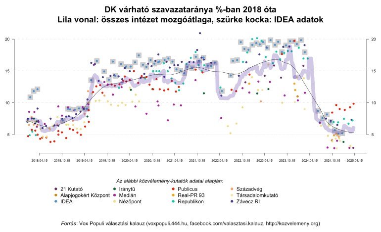 Az is elképzelhető, hogy az IDEA kutatói komolyan elgondolkodtak azon, hogy vajon ki akarják-e tenni magukat olyan vádaskodásnak, mint ami a DK politikusai részéről rendszeresen éri azokat az intézeteket, amelyek a párt aktuális narratívájába (a DK simán tíz százalék felett jár, hiszen mekkorát mentünk az időköziken, ahol nem indult el a TISZA) rosszul illeszkedő adatokat posztolnak. Még az is lehet, hogy az IDEA vezetőjére is irányult ilyen nyomás (persze, én is tudom, hogy volt már tanácsadója DK-s politikusnak, de ez a fajta pártkapcsolat végül is lényegtelen a nyomás meg az esetleges engedés tekintetében is). Egyáltalán nem lenne példátlan, ha magyar közvélemény-kutató engedne ilyen pressziónak és elvárásoknak, sokat látott közvélemény-kutatók is utaltak erre a 2022-es választási közvélemény-kutatásokkal kapcsolatban. Éppen csak a nagyközönség jár rosszul azzal, ha a kutatók csak addig teszik ki az adataikat, amíg nem ütköznek ilyen nyomásba, vagy klasszul követik a többi kutató számait. Persze lehet, hogy tényleg nem bíznak meg saját adataikban, de akkor meg korábban miért tették ki őket? Nem szégyen, ha az embernek nincs pénze Gucci táskára, csak az röhejes, ha a hamisítványra is felteszi a márkás címkét. Ha meg megbánta, akkor vallja be, mint abszolút példamutatóan és egyedülállóan megtette ezt az IDEA 2018-ban.